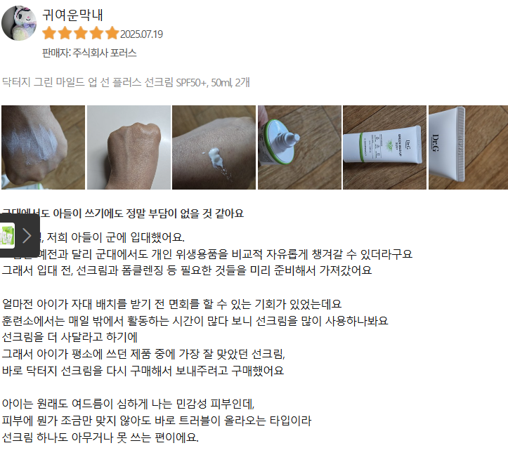- 향: 은은한 무향 또는 천연 향 (민감 피부용 추천)